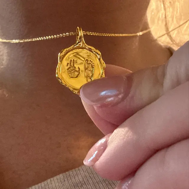Personalized necklace. My daughter’s footprints are beautifully detailed and the name engraving on the back makes it even more special. You can tell it was made with great care and the communication throughout was outstanding. It's the perfect piece for me to wear and keep her close to my heart every day. I couldn’t be happier with how it turned out. Truly a keepsake I’ll cherish forever.